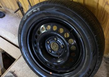 Продам достойные коле́са в сборе от фольцвагена Т5 на штампованных дисках, не новые, но обслужены и покрашены.