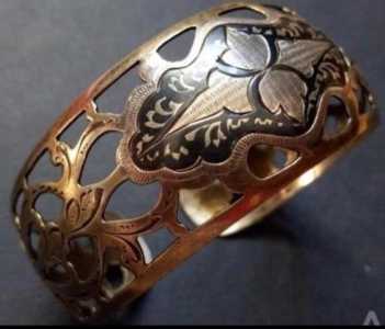 браслет серебряный с позолотой СССР, широкий, винтаж.