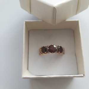 Женское золотое кольцо 585 пробы ,17,5 р, 3 гранатовых камня.