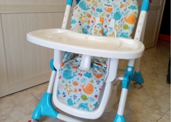 Стул для кормления в хорошем состоянии,имеет ремень-фиксатор регулируемый,можно вобще снять его,стол снимается,мягкий...