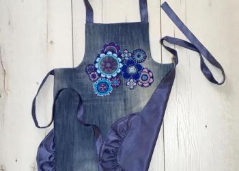 Детский двусторонний фартук для юной хозяюшки. Высота фартука 55 см, длина верхней лямки 43 см.