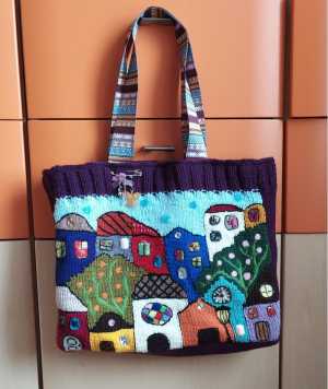 Вязаная сумка Сказочный городок. Выполнена вручную из разноцветной пряжи.