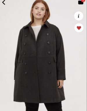 Двубортное серое пальто средней длины H&M plus size.