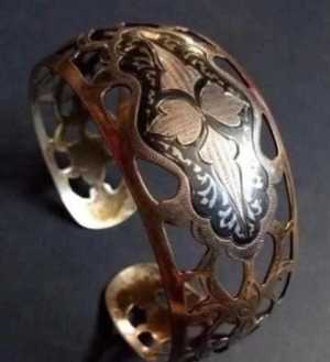 браслет серебряный с позолотой СССР, широкий, винтаж.