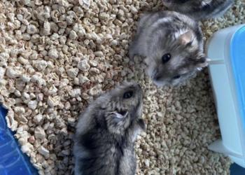 Продам джунгарских хомячков по 200р (если без клетки, с клеткой - по 100р): 3 девочки. Не кусаются, идут на руки.